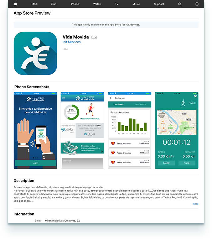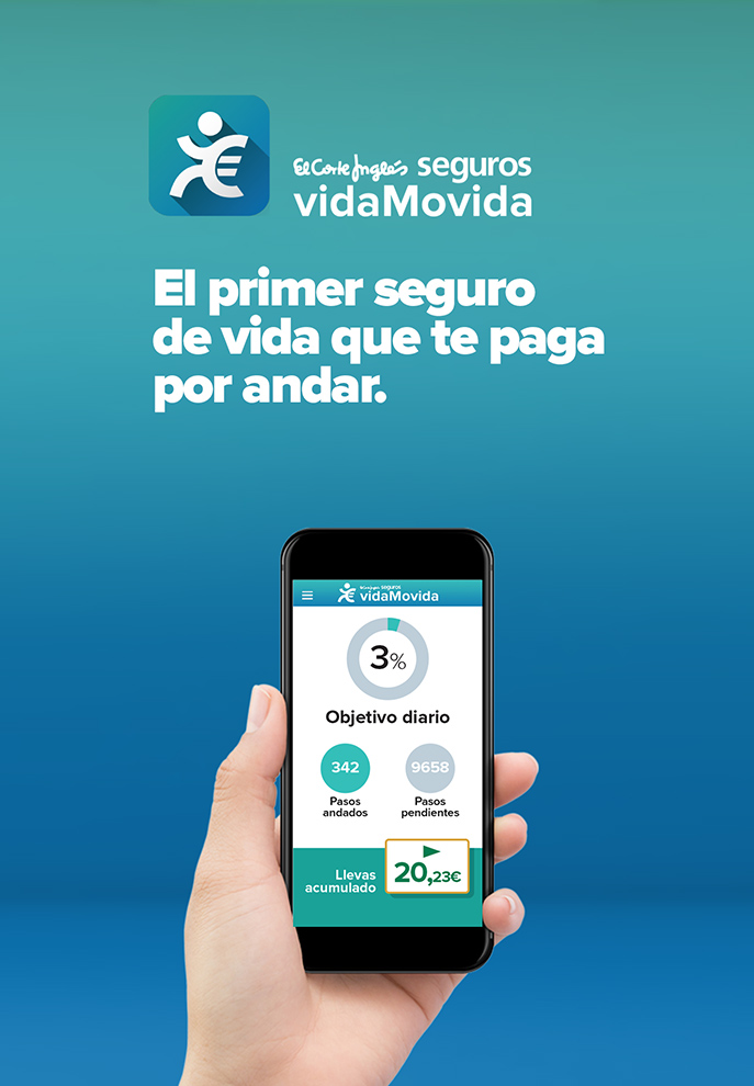 vidaMovida es un producto innovador lanzado por El Corte Inglés Seguros: un seguro de vida que premia a quienes llevan un estilo de vida activo. Si el asegurado camina a diario y cumple ciertos hábitos saludables (como no fumar), puede recuperar parte de su prima en forma de tarjeta regalo de El Corte Inglés.